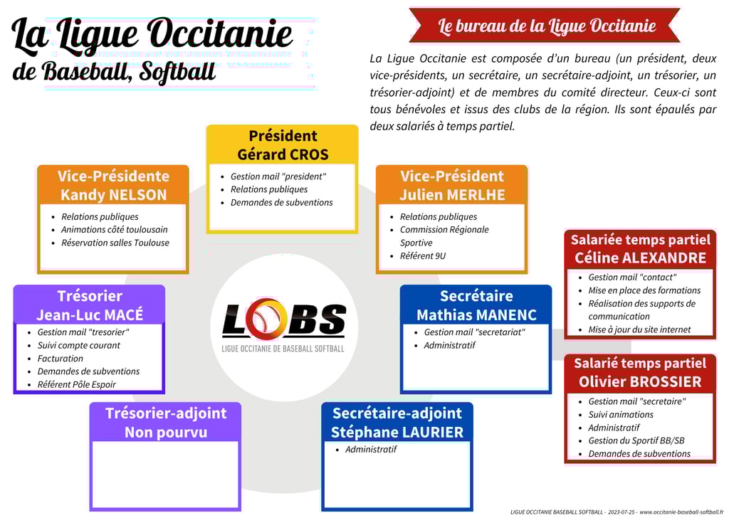 La Ligue Occitanie de Baseball Softball B5 a pour objet d’exercer sur les comités départementaux et les clubs affiliés, ayant leur siège sur son territoire, ainsi que sur les licenciés de ces clubs, les pouvoirs qui lui sont délégués par la fédération, sur décision du comité directeur fédéral.